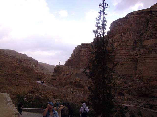 Ущелье, где расположен монастырь Георгия Хозевита, виден православный крест.